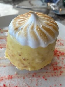 In Les Baux-de Provence we hiked to an overlook with a view of the limestone mountains in the background and enjoyed a mini lemon chiffon pie topped with meringue as a sweet treat after lunch.