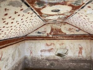 In Italy, we opted to take a tour south of the port to experience a necropolis, an ancient burial ground with both above ground memorials to the dead. The crematoria looked like stone mushrooms, and the subterranean crypts had well preserved and elaborate artwork which required a steep climb to view!